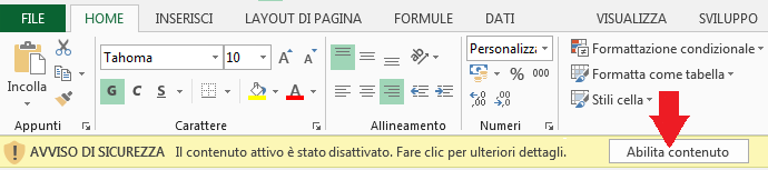 Qualora le macro non fossero attivate compare il messaggio che segue: